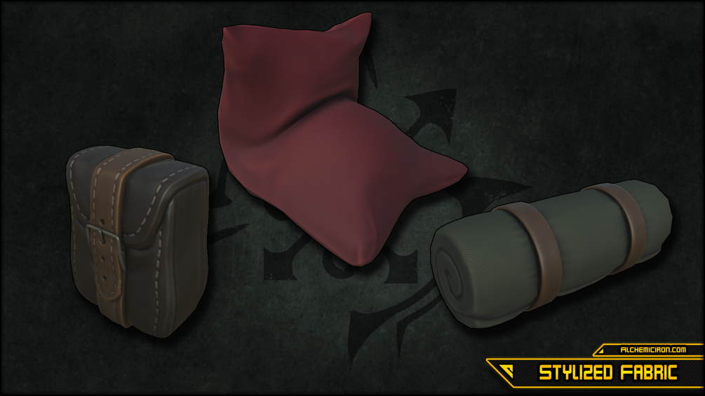 This pack includes 18 stylized fabric materials, both cloth and leather;