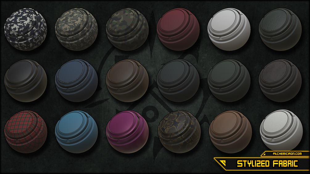 This pack includes 18 stylized fabric materials, both cloth and leather;